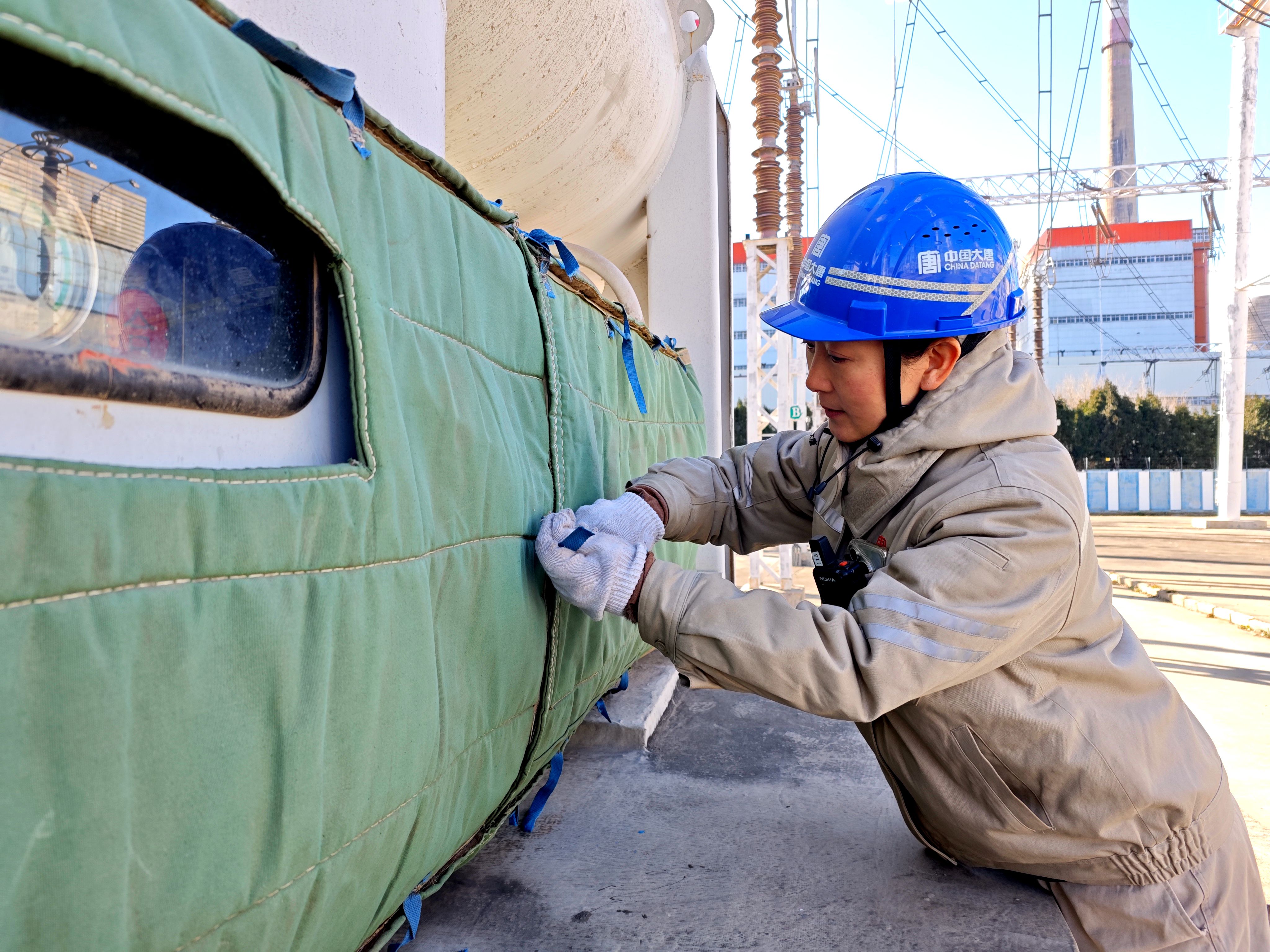 “這個(gè)接口處要包嚴(yán)實(shí),不能留一點(diǎn)縫隙,不然熱氣都跑了。”班長(zhǎng)趙詩(shī)宇一邊指導(dǎo)年輕員工郝巖包裹開關(guān)接線口,一邊提醒道。郝巖認(rèn)真點(diǎn)頭,手上動(dòng)作更加細(xì)致:“明白,班長(zhǎng)。這保溫棉貼合度真不錯(cuò),裁剪得也正合適?!?/p>
