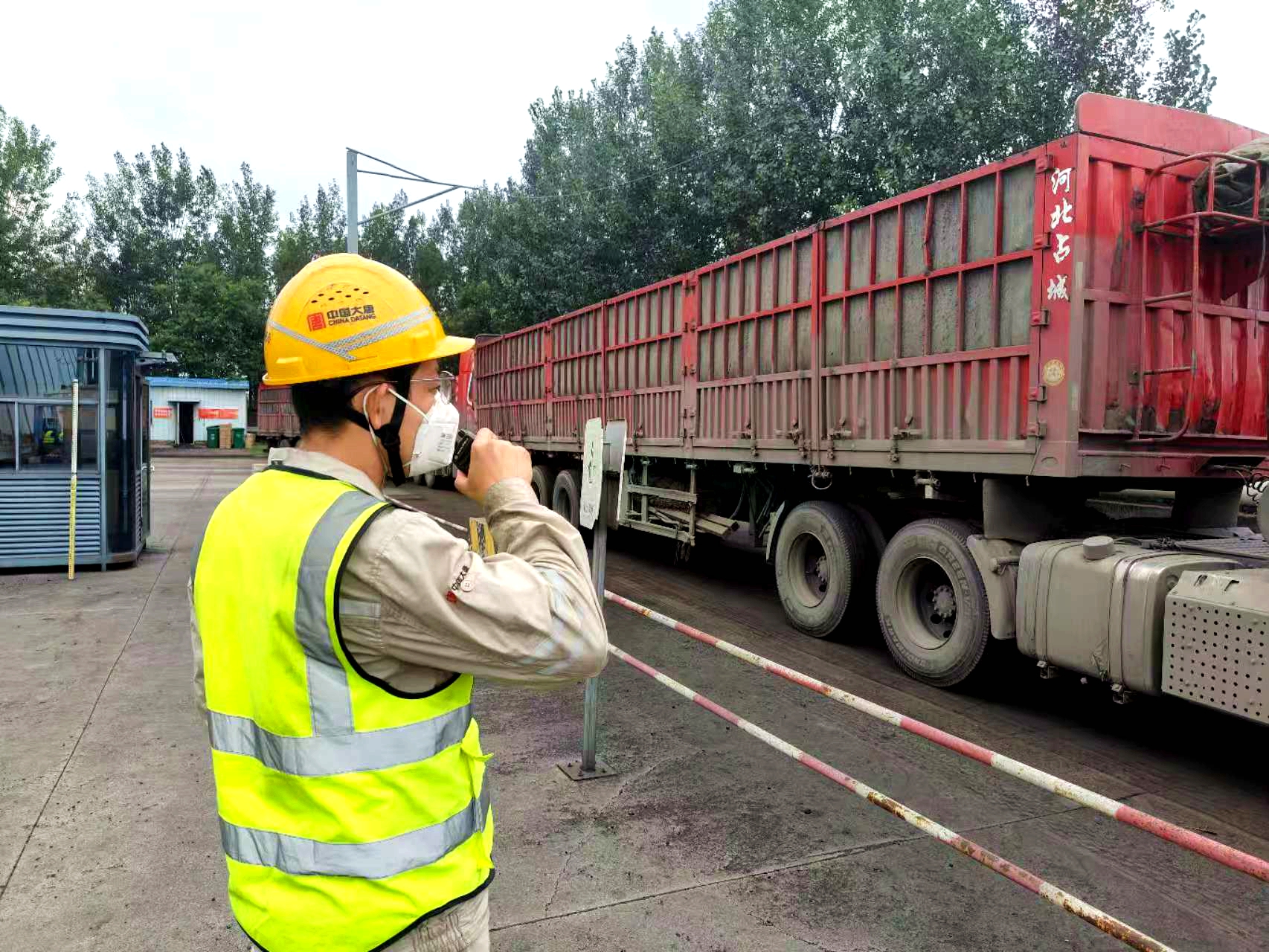 “老張、小顧,運煤車輛停到南煤場了,已經打開車門并做好人車分離,可以采樣了。”
