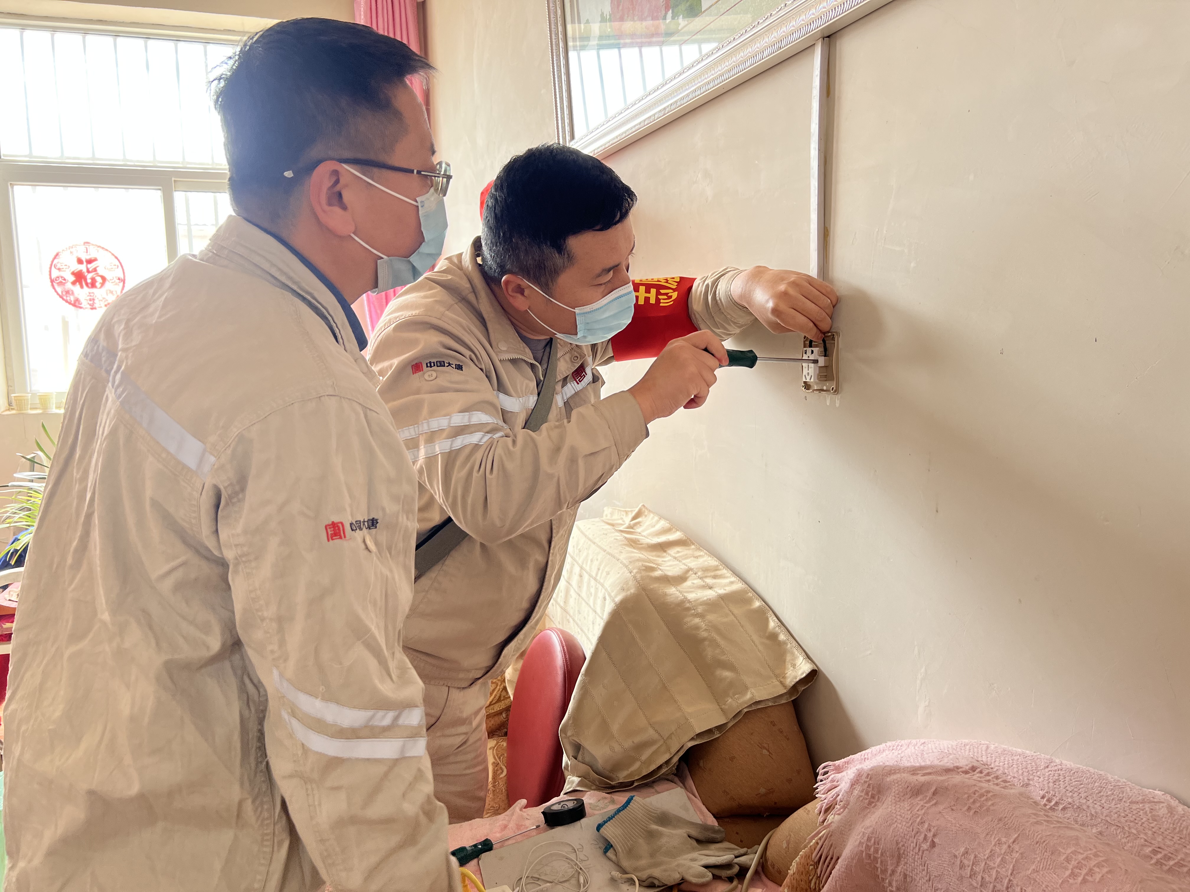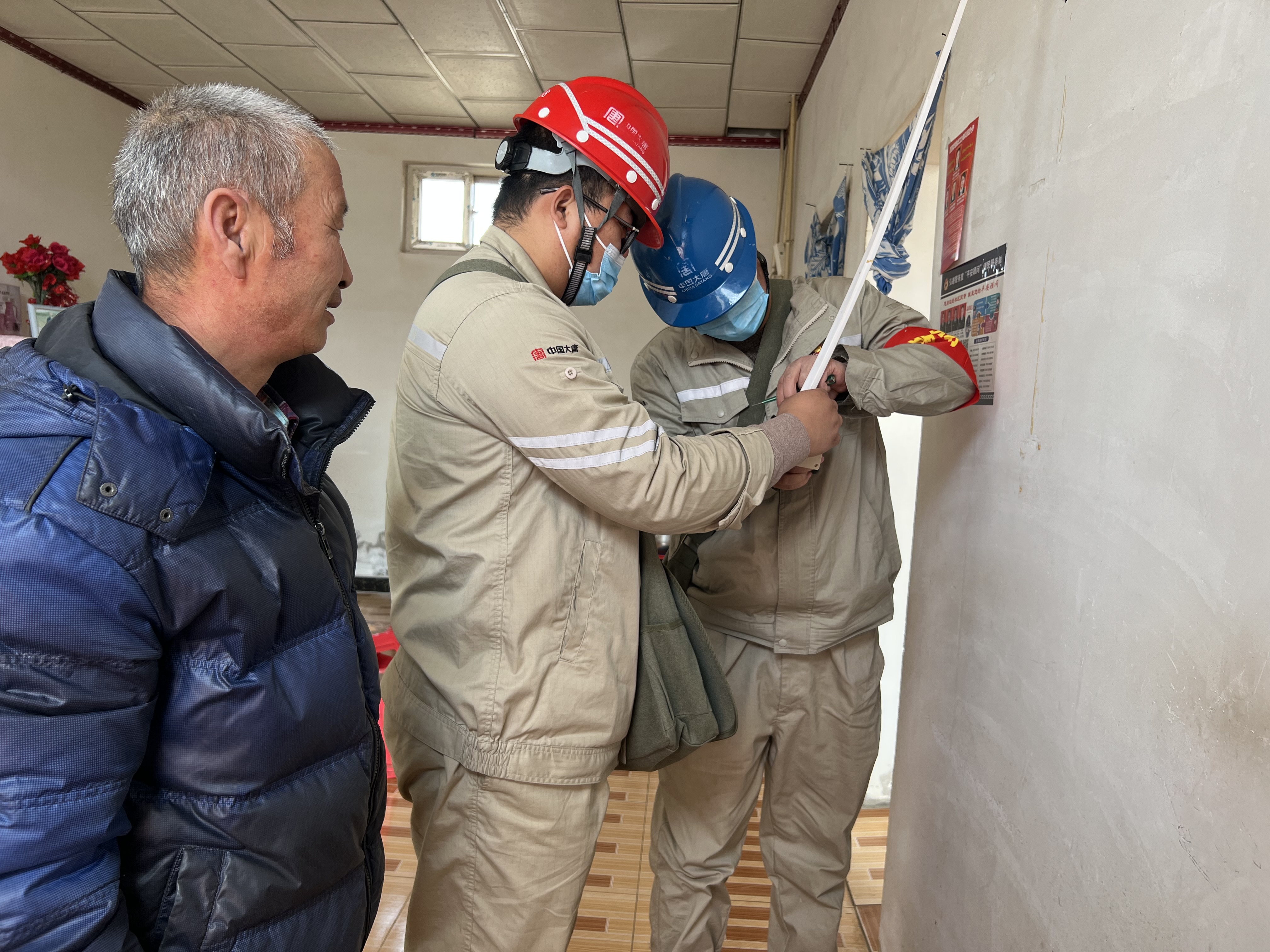 “有的老人因習慣了自己先前的生活,不愿跟隨兒女搬遷,就成了獨居的空巢老人。”村支部副書記介紹,由于這部分老人獨居,線路是否老化不是很清楚,再加上老人安全用電常識的缺乏,極易發生斷電或觸電可能。“平時我們去老人家里時,看到他們家中的插座和開關都比較舊,很容易因為短路而發生火災。今天大唐志愿者們來了,真是為老人家解決了用電隱患,我替老人家謝謝你們。”