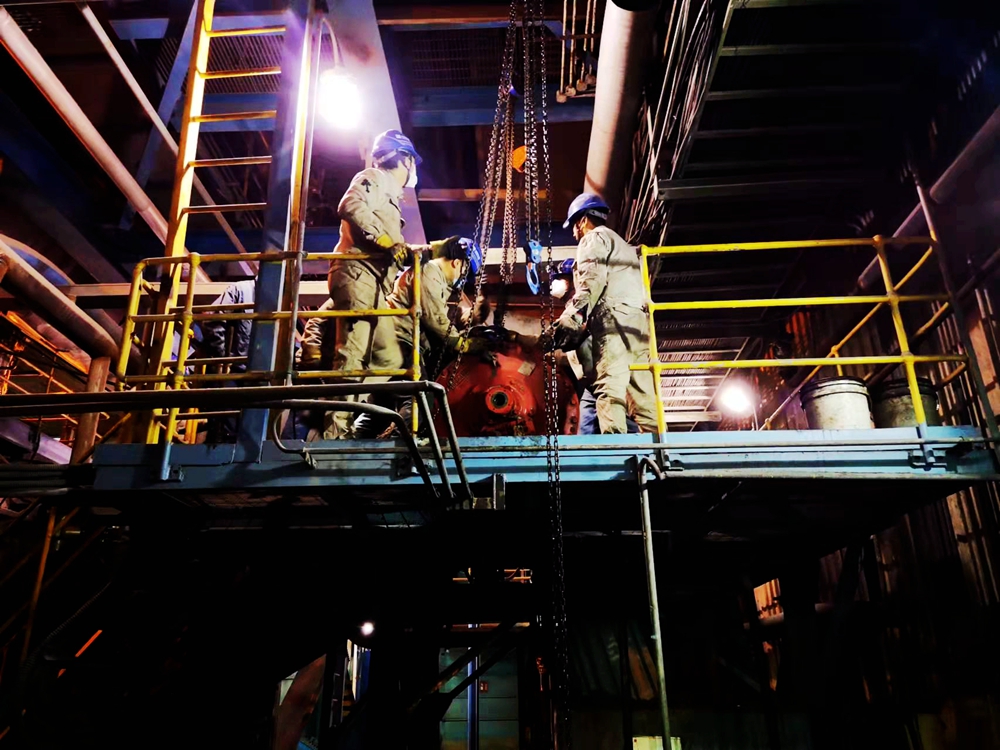 搶修4號鍋爐撈渣機(jī)(王小周/攝)