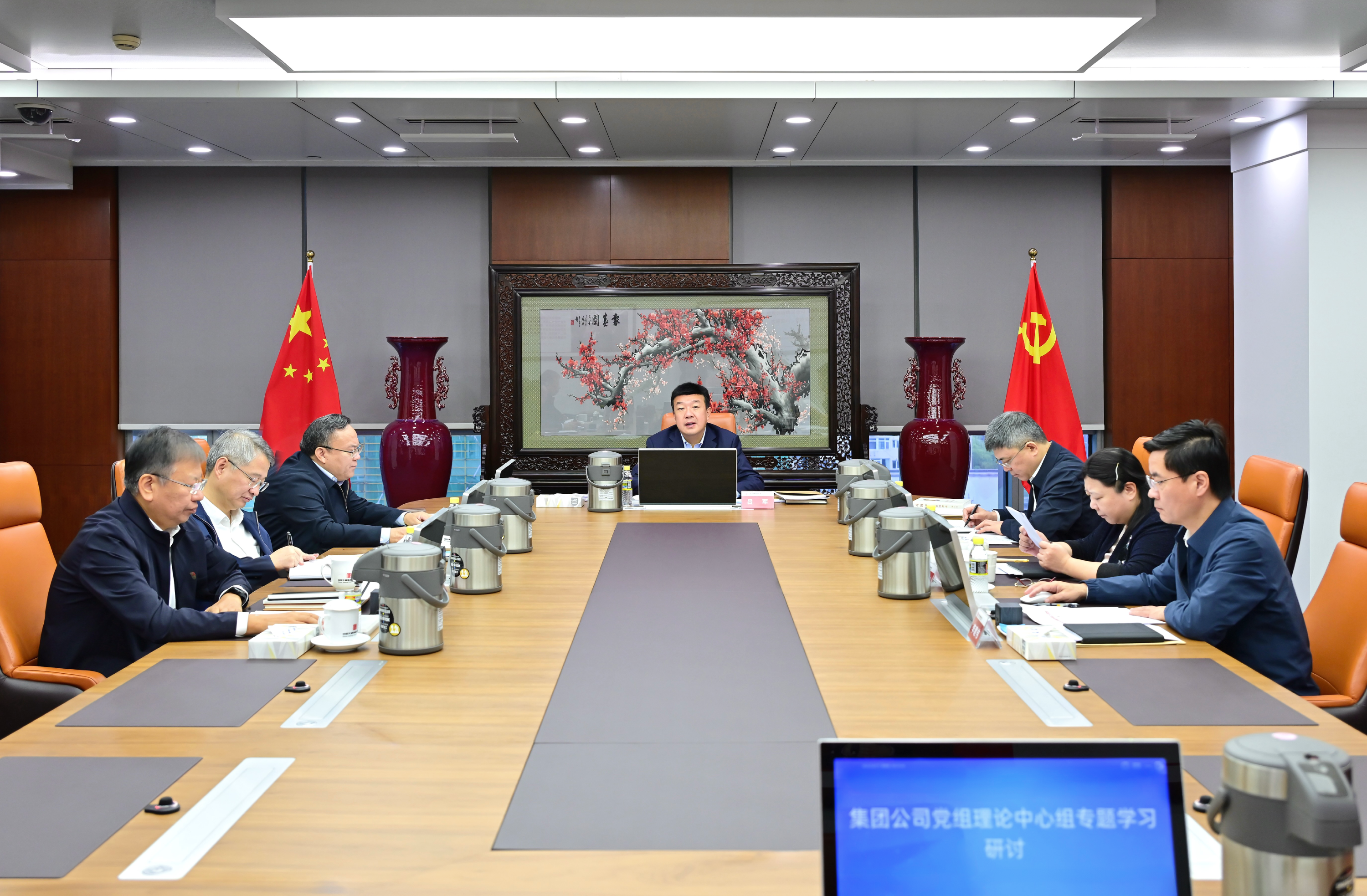 集團公司黨組書記、董事長呂軍主持學習并講話,集團公司領導李向良、余波、王瑛、陶云鵬、李建偉、王海騰參加專題學習研討。