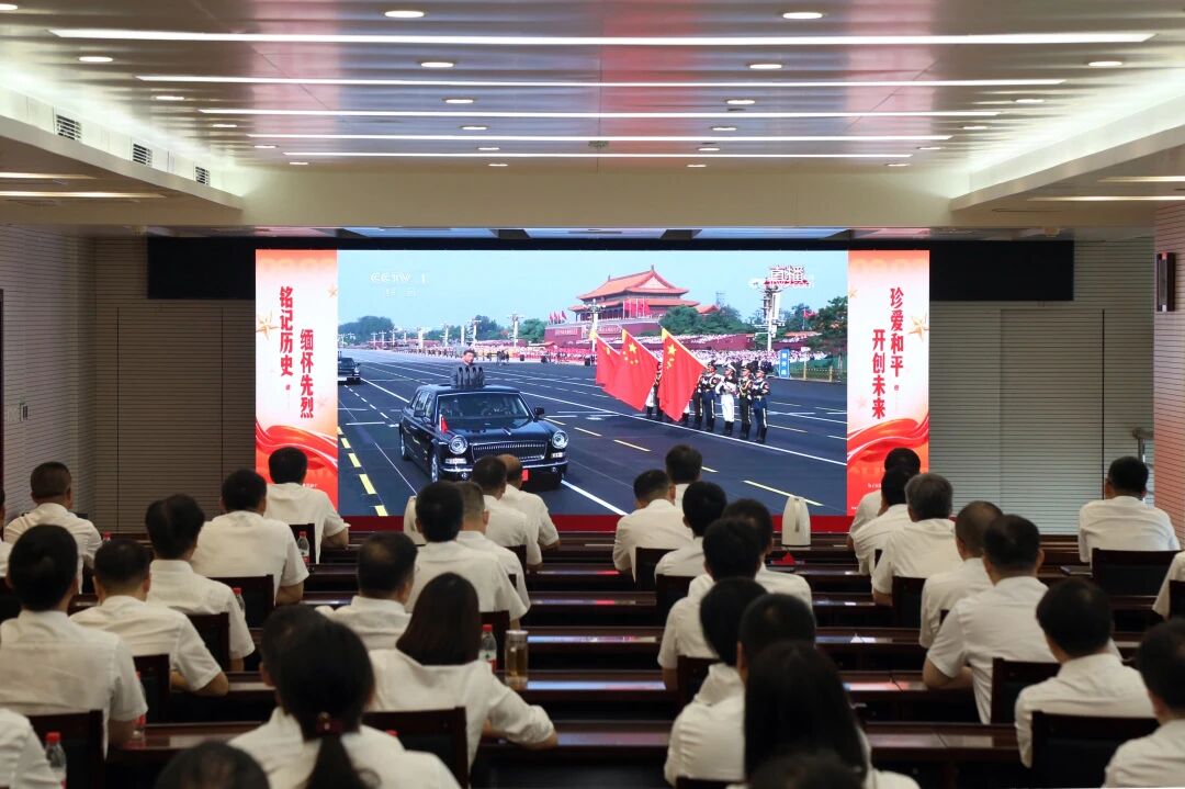 桂冠電力組織干部職工集中收看九三閱兵直播,共同感受國家的強大與民族的自豪。