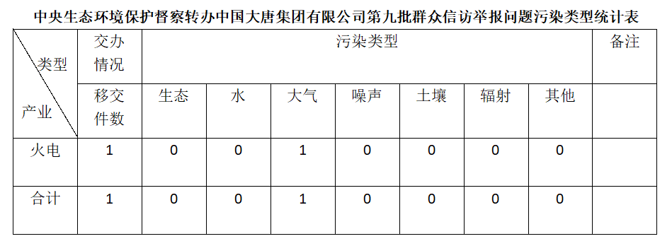 2025年6月12日,中央第七生態(tài)環(huán)境保護(hù)督察組向中國(guó)大唐集團(tuán)有限公司移交第九批群眾信訪舉報(bào)件,共計(jì)1件,為來電舉報(bào),涉及大氣問題1個(gè)。所有舉報(bào)件辦理工作已第一時(shí)間進(jìn)入調(diào)查核實(shí)辦理程序,辦理情況將按照相關(guān)要求反饋督察組,并及時(shí)向社會(huì)公開。