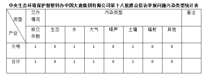 中央第七生態環境保護督察組向中國大唐集團有限公司轉辦第十八批群眾信訪舉報件
